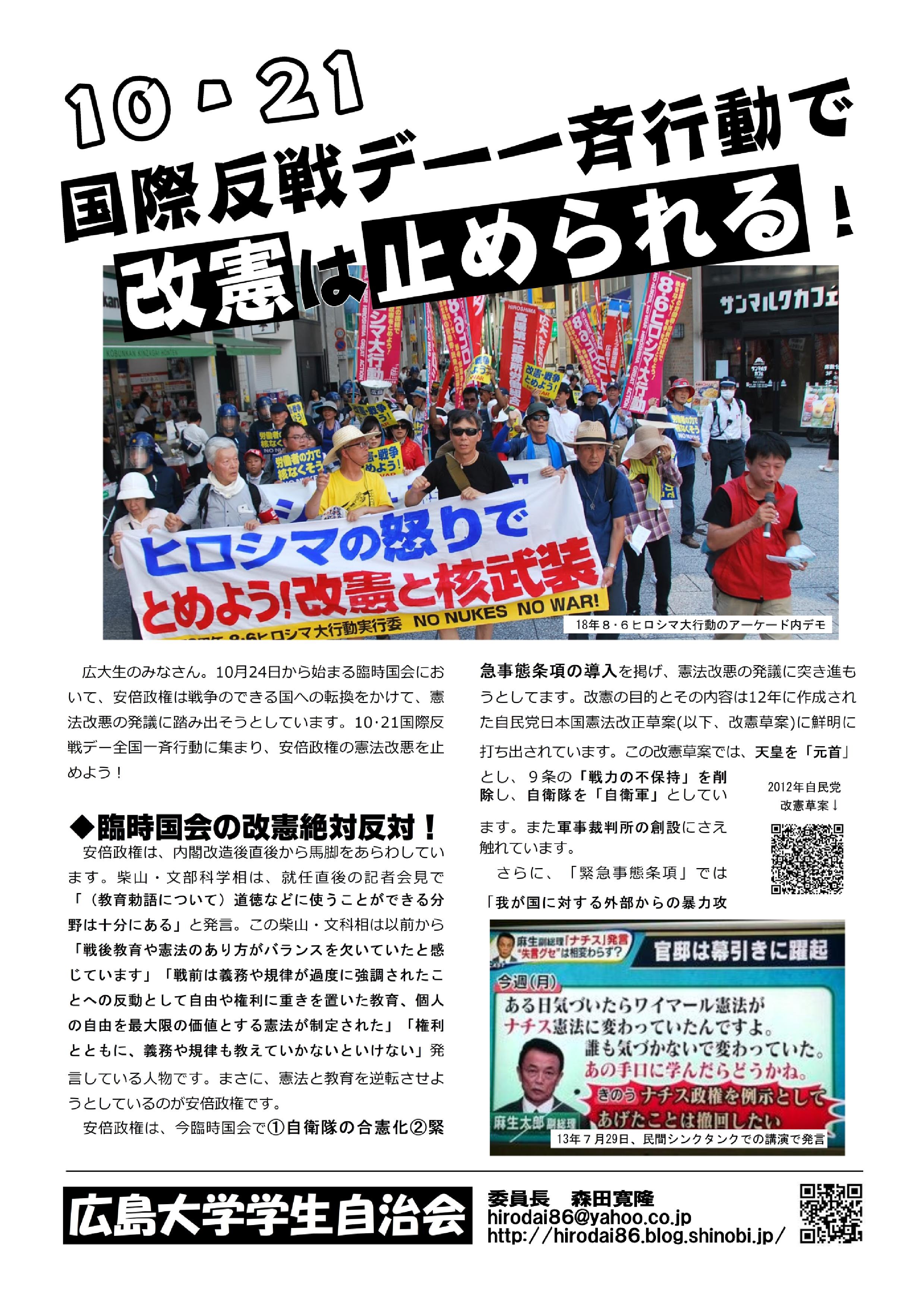 立て看板規制と京大生の闘い報告集会 ◆立て看板規制と京大生の闘い報告集会をやります!【要項】7月23日(月)12:00~@スペイン広場主催:広島大学学生自治会◆広大・京大生交流会【要項】18:00~@総科棟K208主催:大学の規制を考える会